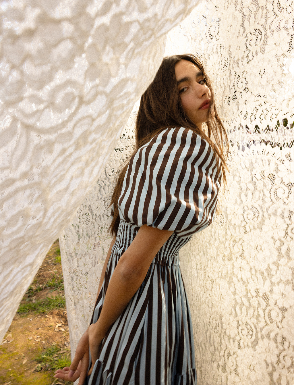 A timeless classic in linen redefined with a sculptural, contemporary shape.