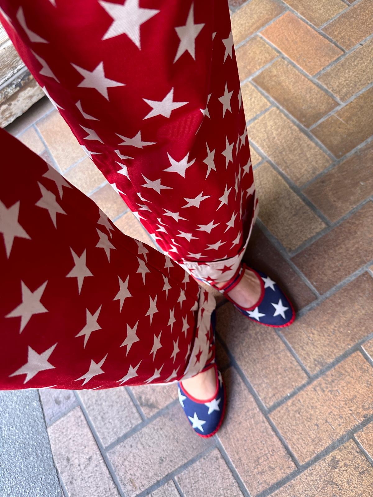 PRODUCTO OUTLET* - Mercedita con estampado de estrellas azul y blanco, con ribete a contraste en tono rojo y cierre con doble abotonadura. Recomendamos una talla más de la usada habitualmente.